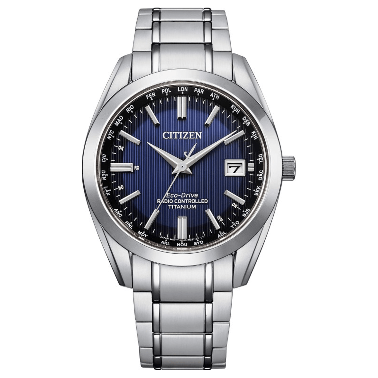 Orologio radiocontrollato da uomo di Citizen della collezione h 145 elegance. Orologio con cassa e bracciale in super titanio con finitura al platino con diametro di 40mm. Il quadrante blu con indici applicati. Orologio con bracciale in super titanio con chiusura di sicurezza. La resistenza all'acqua è di 10 atm. Movimento: eco drive con riserva di carica di 24 mesi antimagnetico. Funzioni: radiocontrollato a 5 canali-world timer con 26 citta del mondo calendario perpetuo. Orologio con vetro zaffiro. La referenza è CB0260-81L